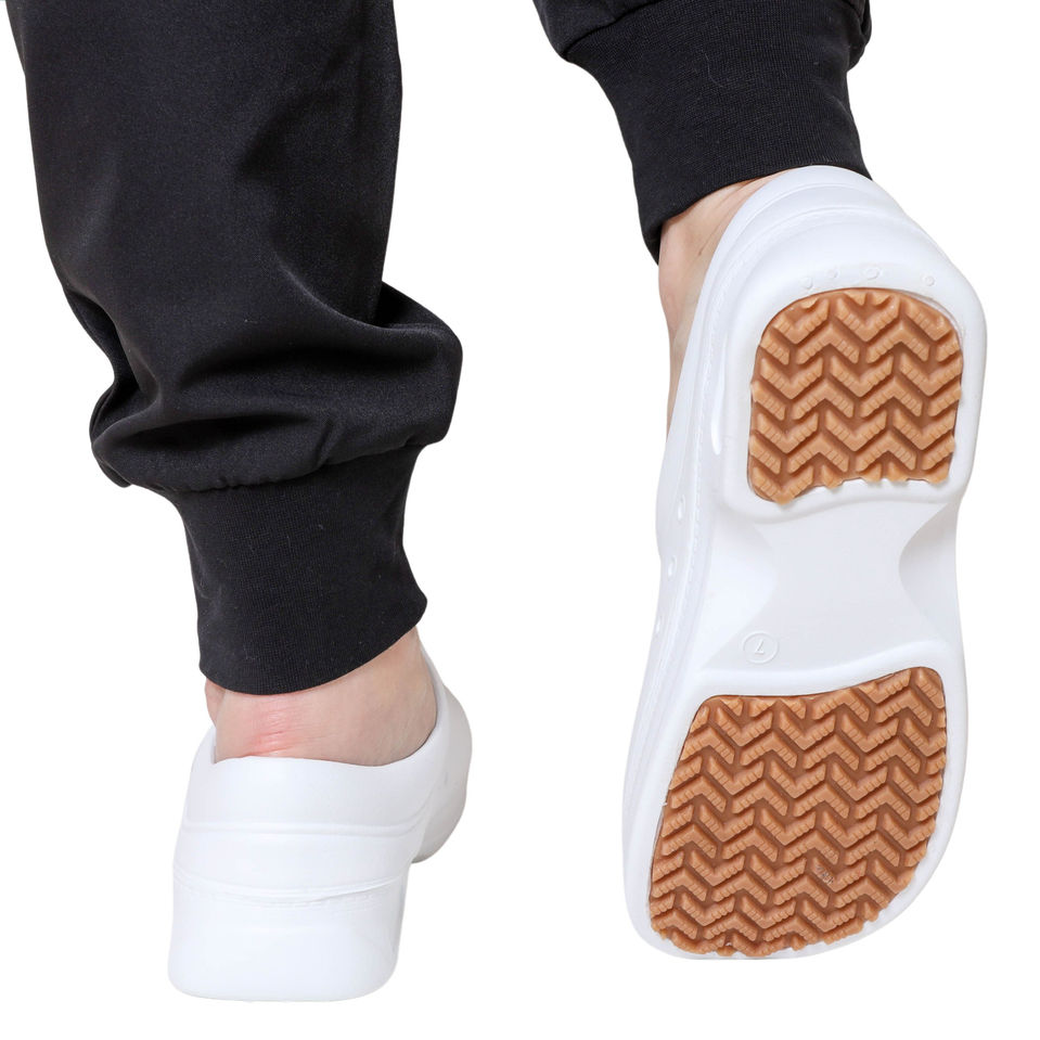 CodeScrubs white EVA shoes are extremely lightweight yet supportive. Constructed from premium materials, these shoes are designed to mold to your foot like a pillow-cushioned glove. Featuring a convenient pull-on style and flexible shoe inserts, these unisex shoes for medical professionals provide the quality and comfort healthcare workers deserve.