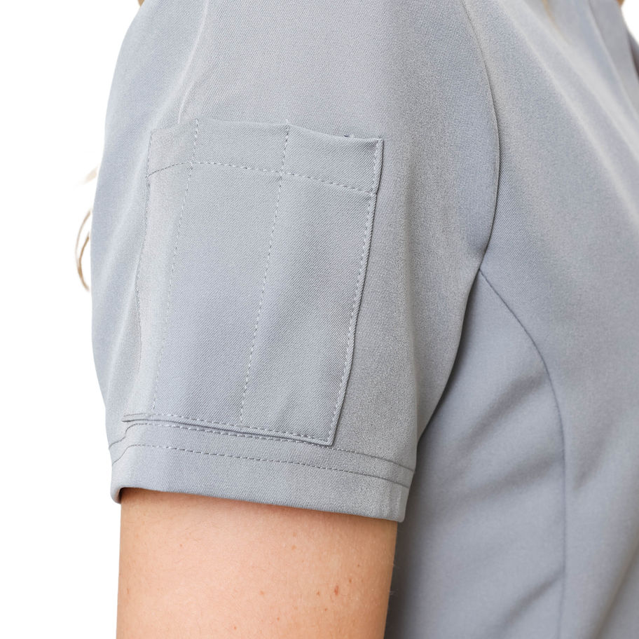 Introducing our most sophisticated and flattering scrub top for women yet. Form fitted without being too tight, this thoughtfully tailored top was crafted to be anything but boxy. Elegant drop-shoulder seams, pleated V-neck collar, and figure-curving front and back darts ensure a flawless fit. The CodeScrub Flex Fit scrub top for women is the epitome uniform excellence.